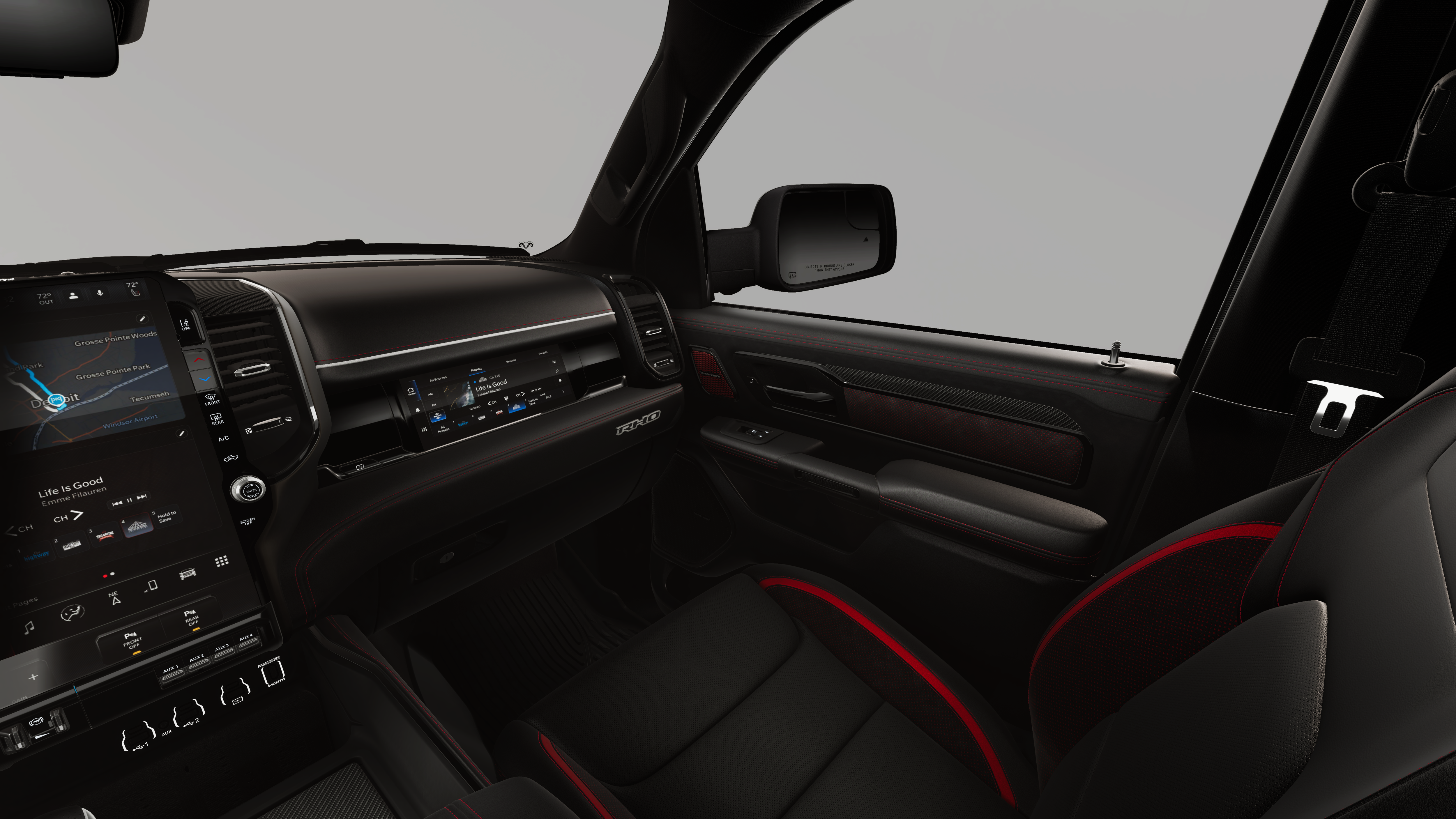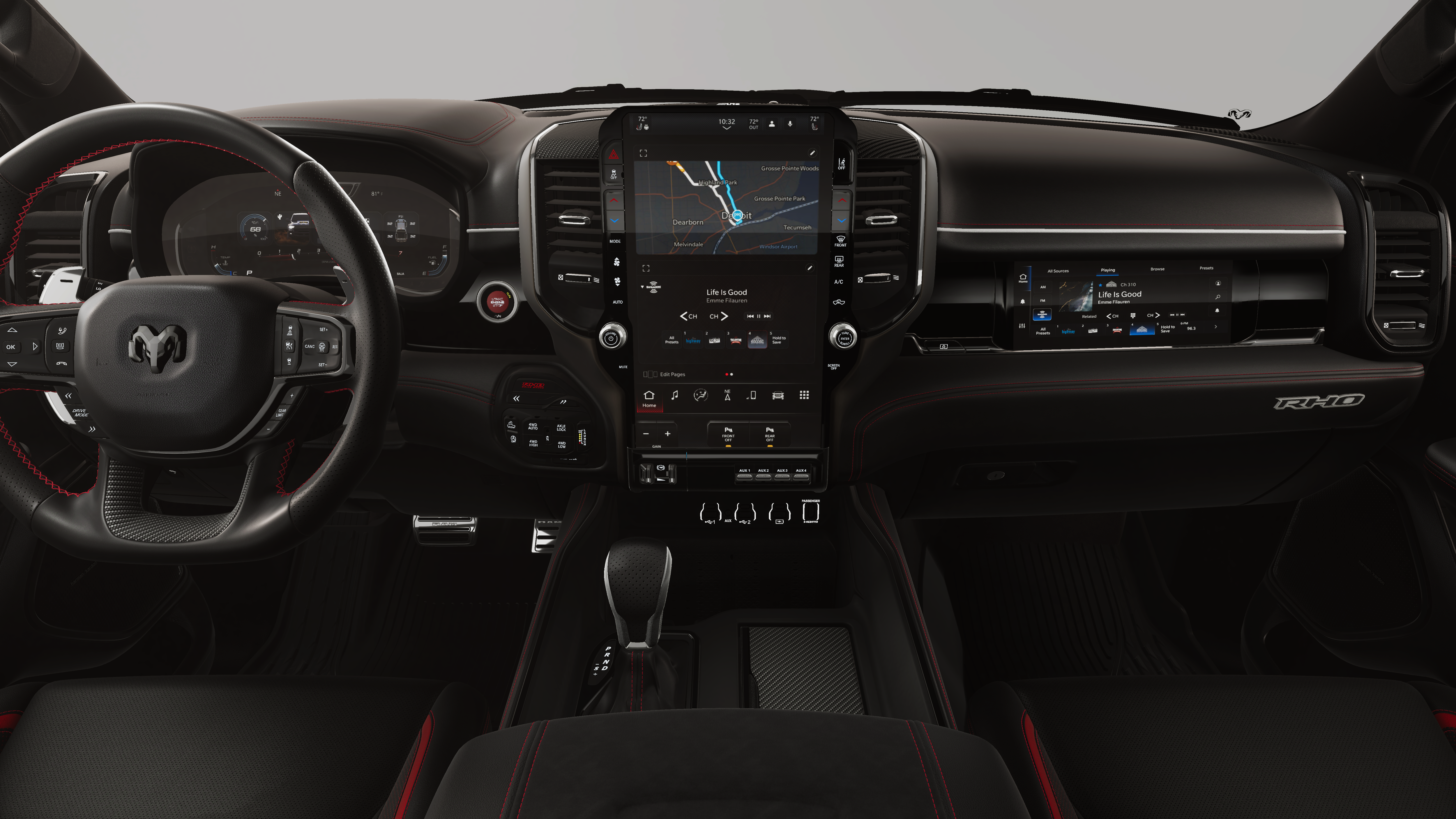 Beyond its impressive performance, this Ram 1500 RHO is packed with a wealth of advanced features designed to enhance your daily commute and long-haul adventures. The Surround View Camera System provides unparalleled visibility, while the Heads-Up Display and Traffic Sign Recognition keep you informed and focused on the road ahead.
